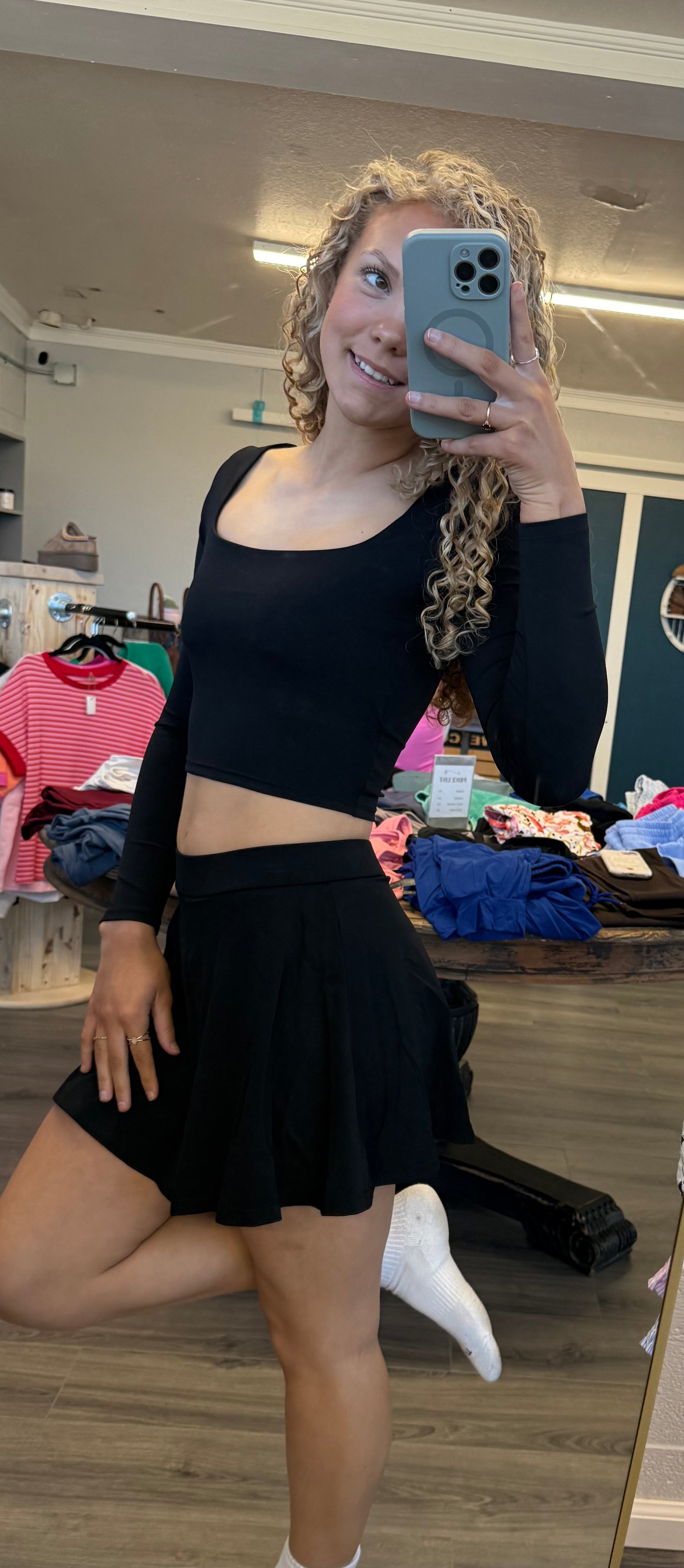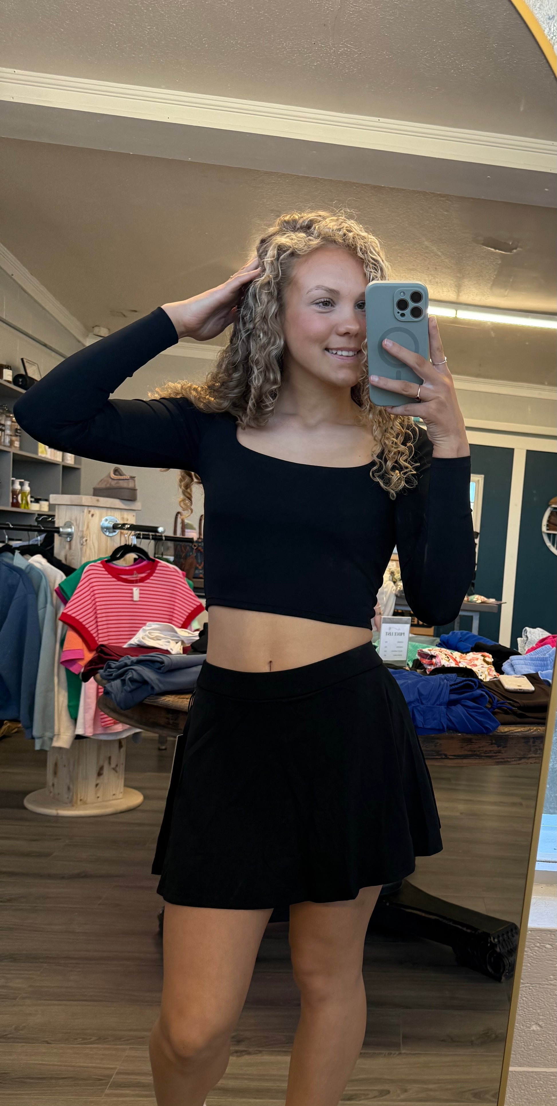 Ballet-inspired long sleeve with a chic, square neckline and removable padding.