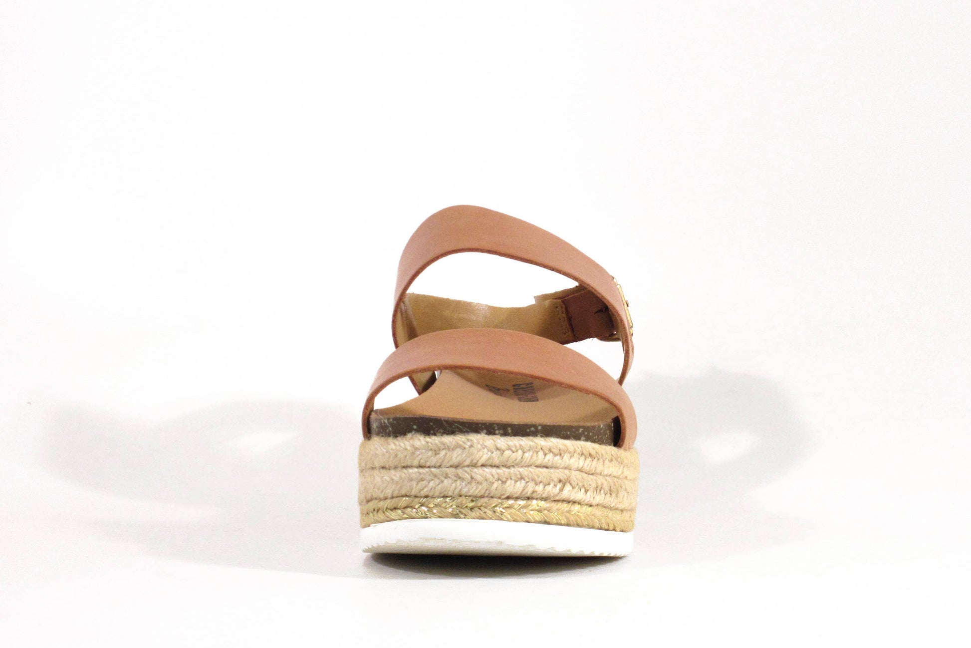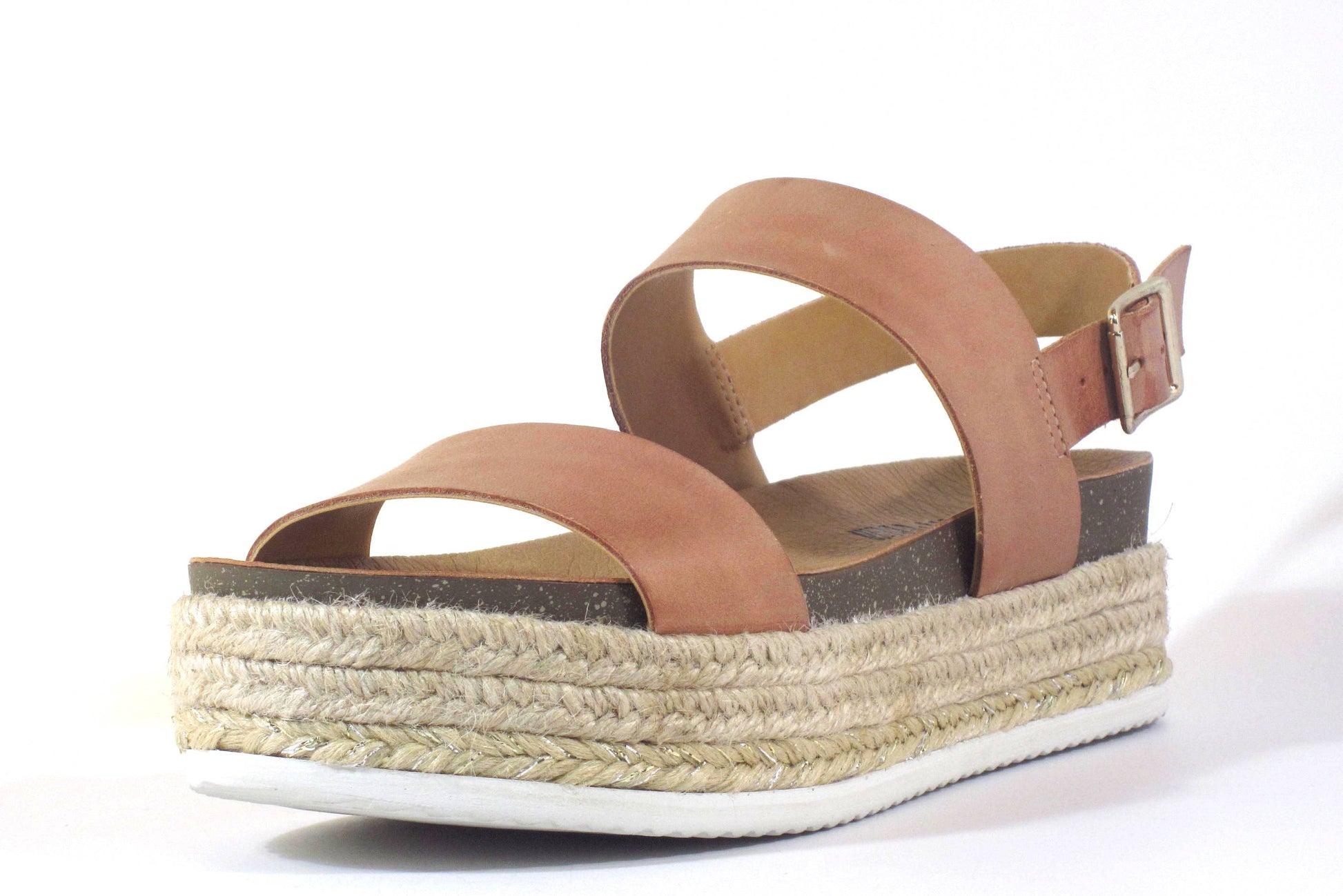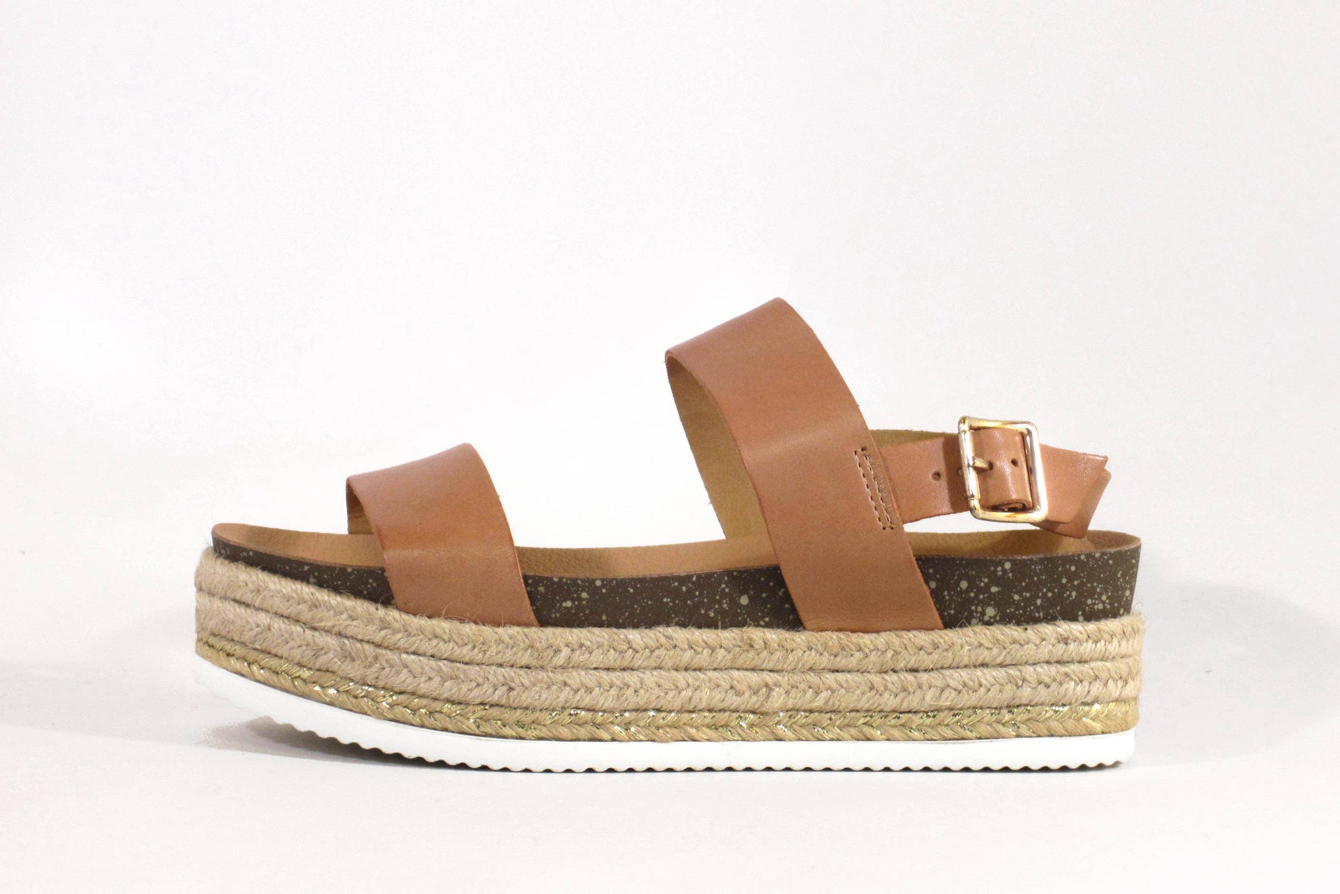 Featuring a heightened cork flatform sole and thick sporty straps, our COLBY makes a modern-rugged fashion statement while providing support that your feet will thank you for. This style is featured in rose gold, black and bone with a two-inch heel. Leather: Upper Adjustable buckle closure Flatform Height: 1''
