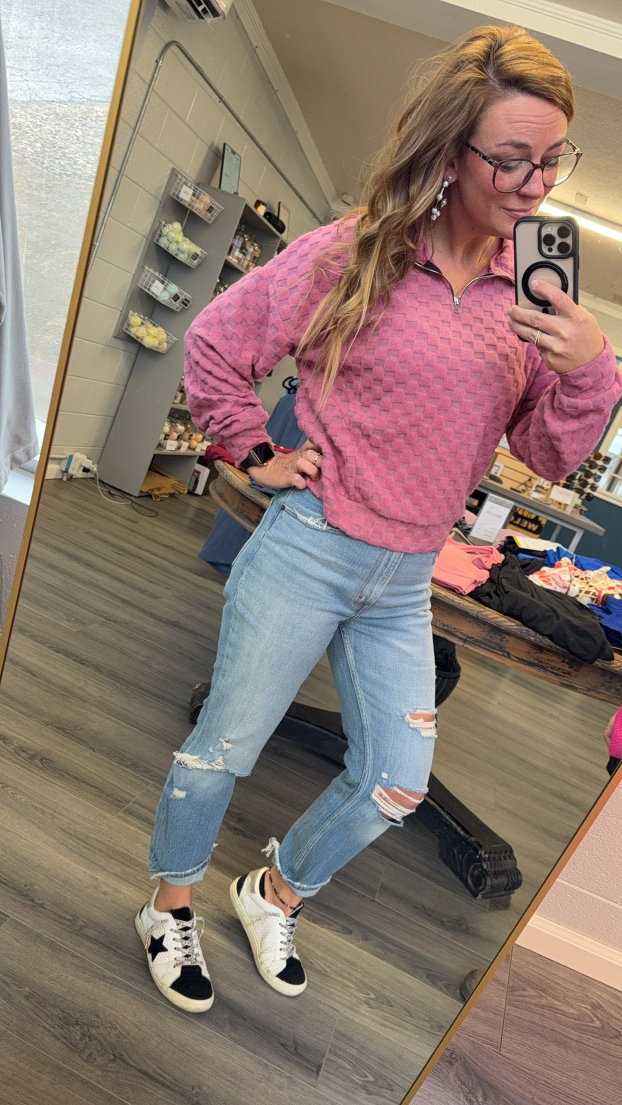 Stay cozy and stylish on the go with our Women's Quarter Zip. This sweatshirt is made from incredibly soft brushed knit fabric, providing ultimate comfort. Featuring a relaxed fit with a drop sleeve and a quarter zip neckline for a touch of versatility.