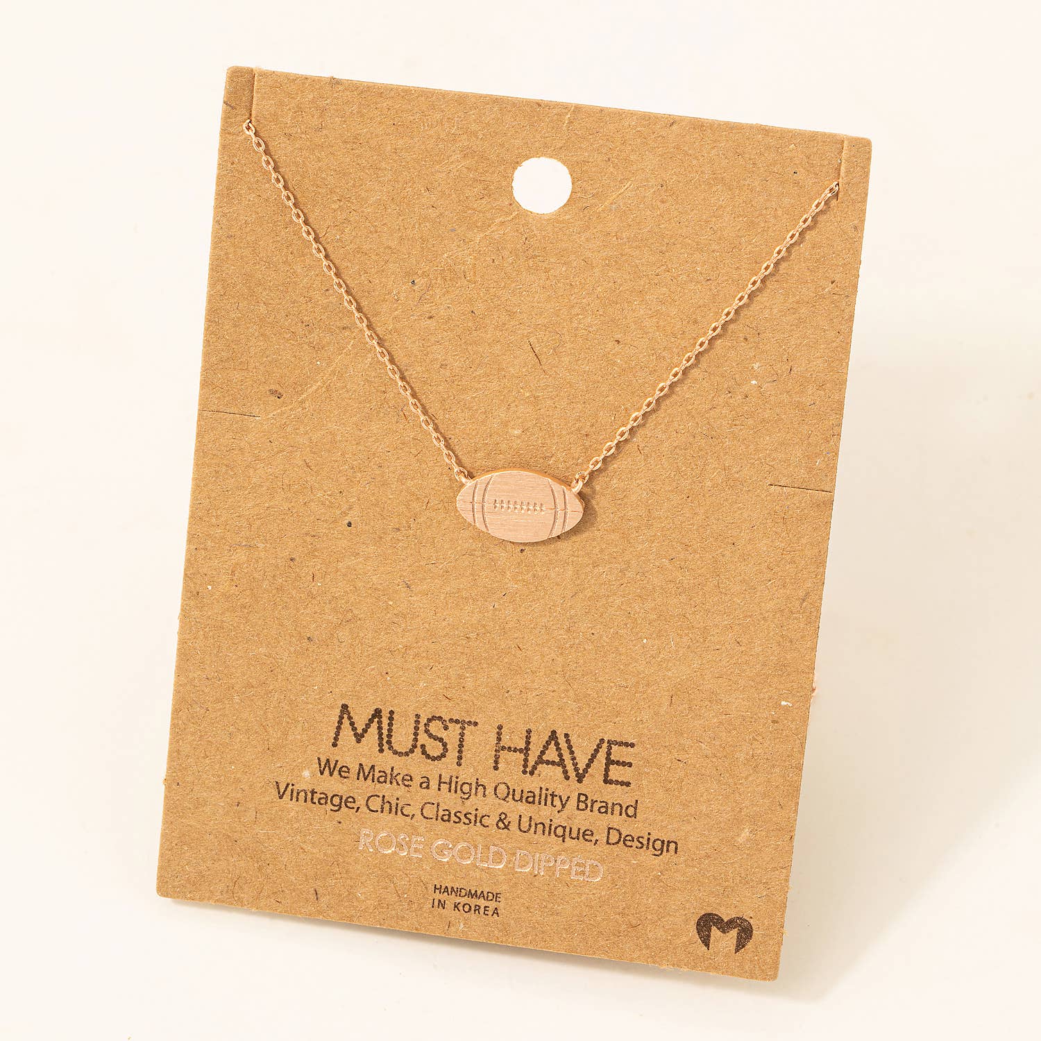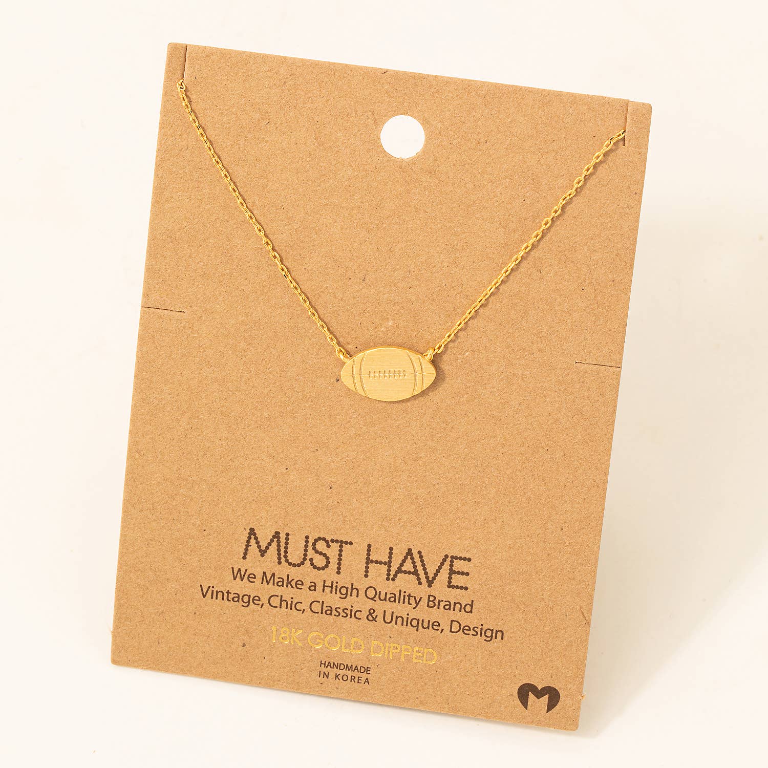 Dainty Football Pendant Necklace. Expertly crafted, this piece features a length of approximately 16".