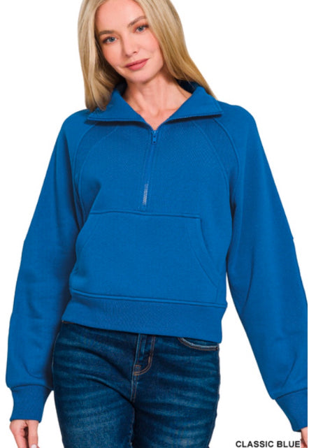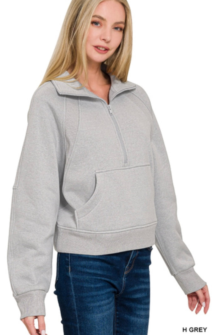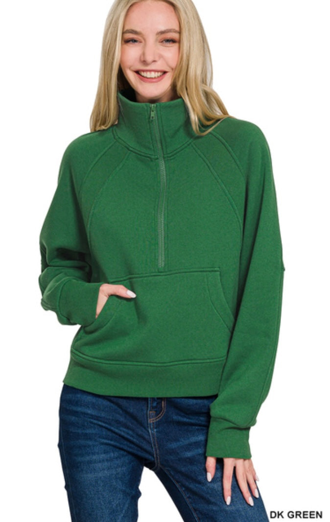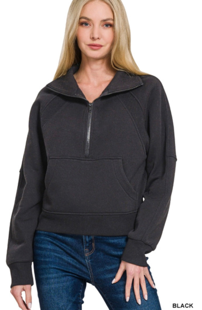 FLEECE HALF ZIP KANGAROO POCKET SWEATSHIRTS