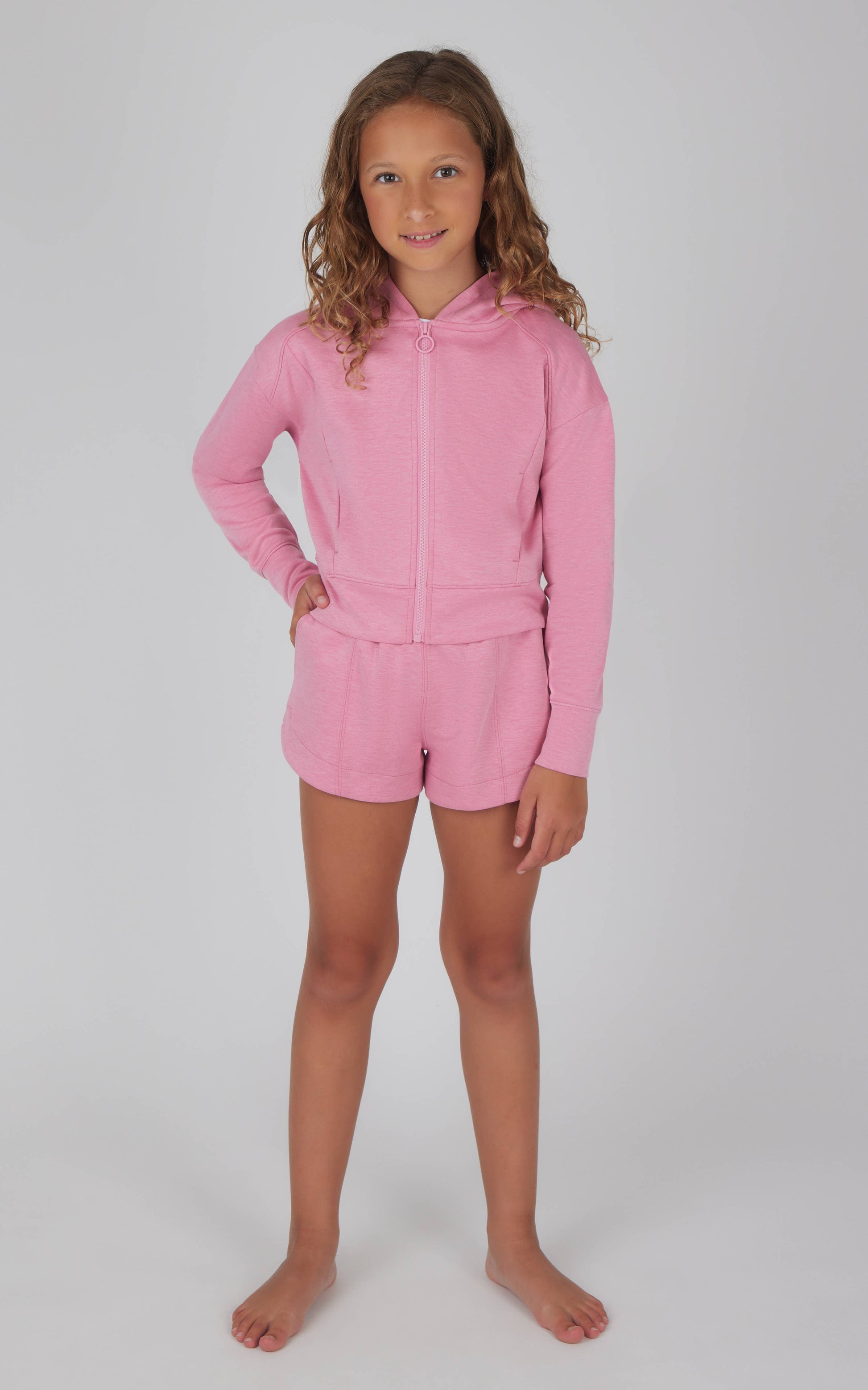 Keep their looks perfectly coordinated! Girls Scuba Front Zip Jacket with Pockets, Rib Fitted Tank, and Scuba Short - 3 PC SET