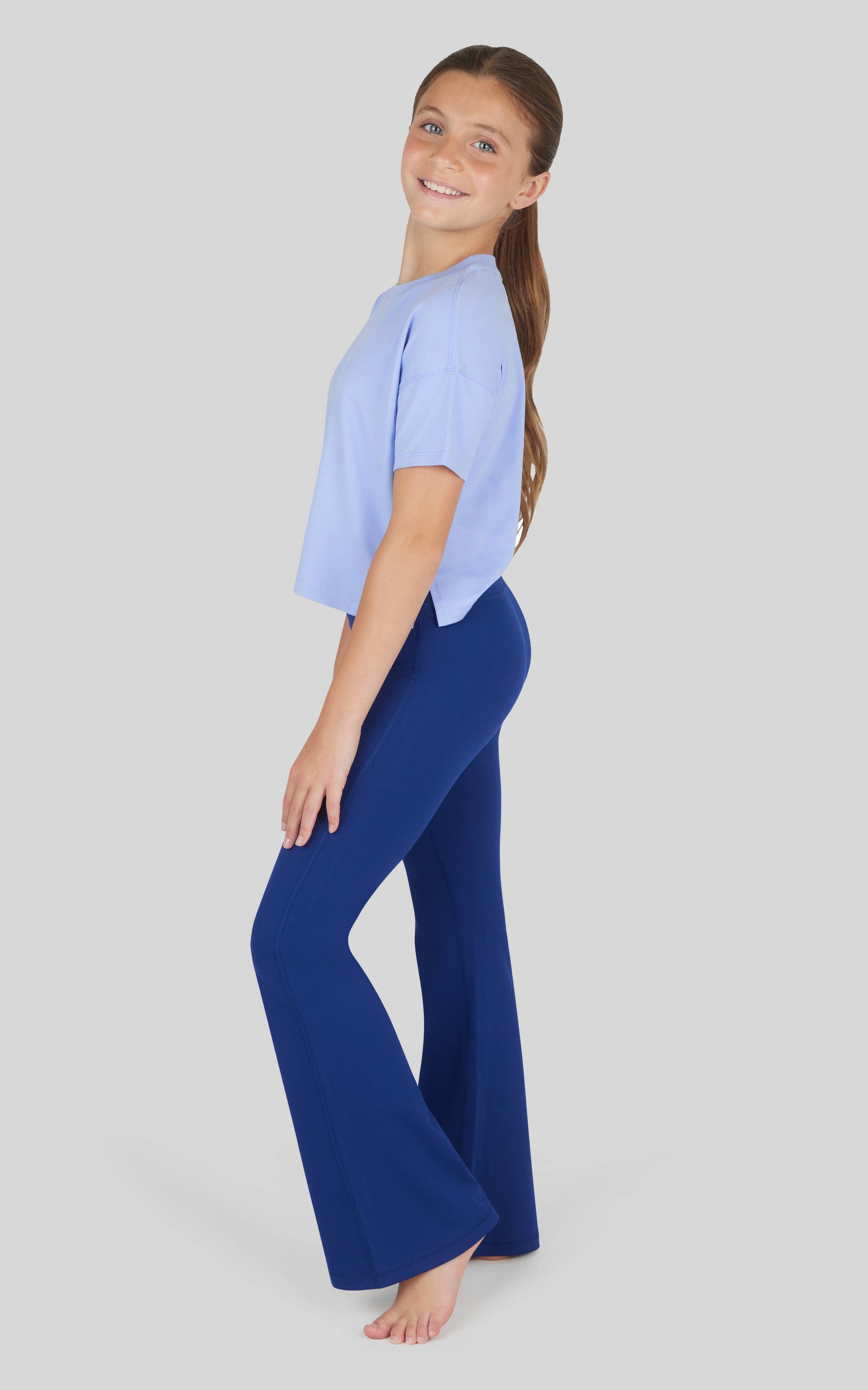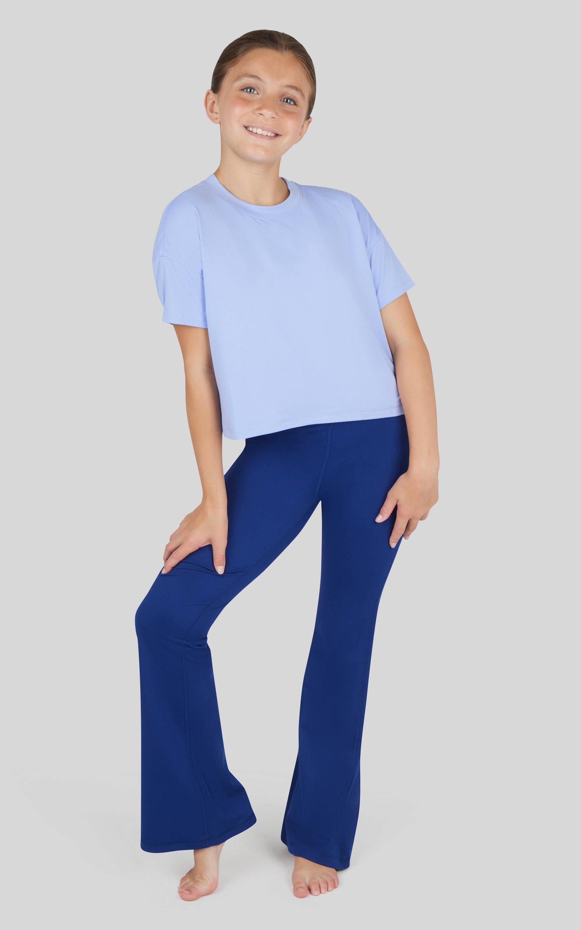 Girls Super Soft Deluxe Short Sleeve T shirt, Crossover Full Length Leggings, and Everyday High Rise Flare - This is 3 pcs set! - This includes 1 T shirt, 1 Leggings and 1 Flare pant - Easy to style, great for everyday - All year round essential!
