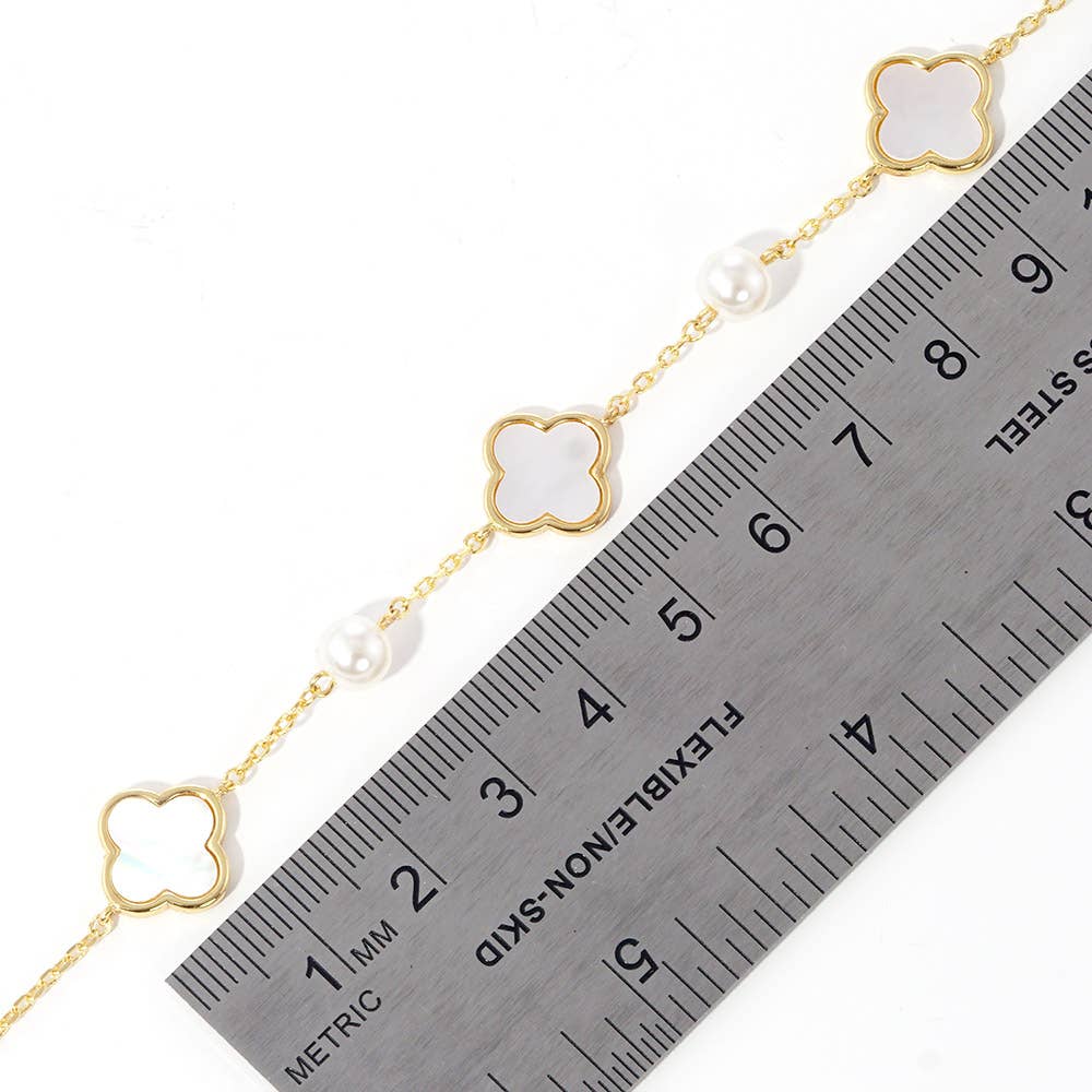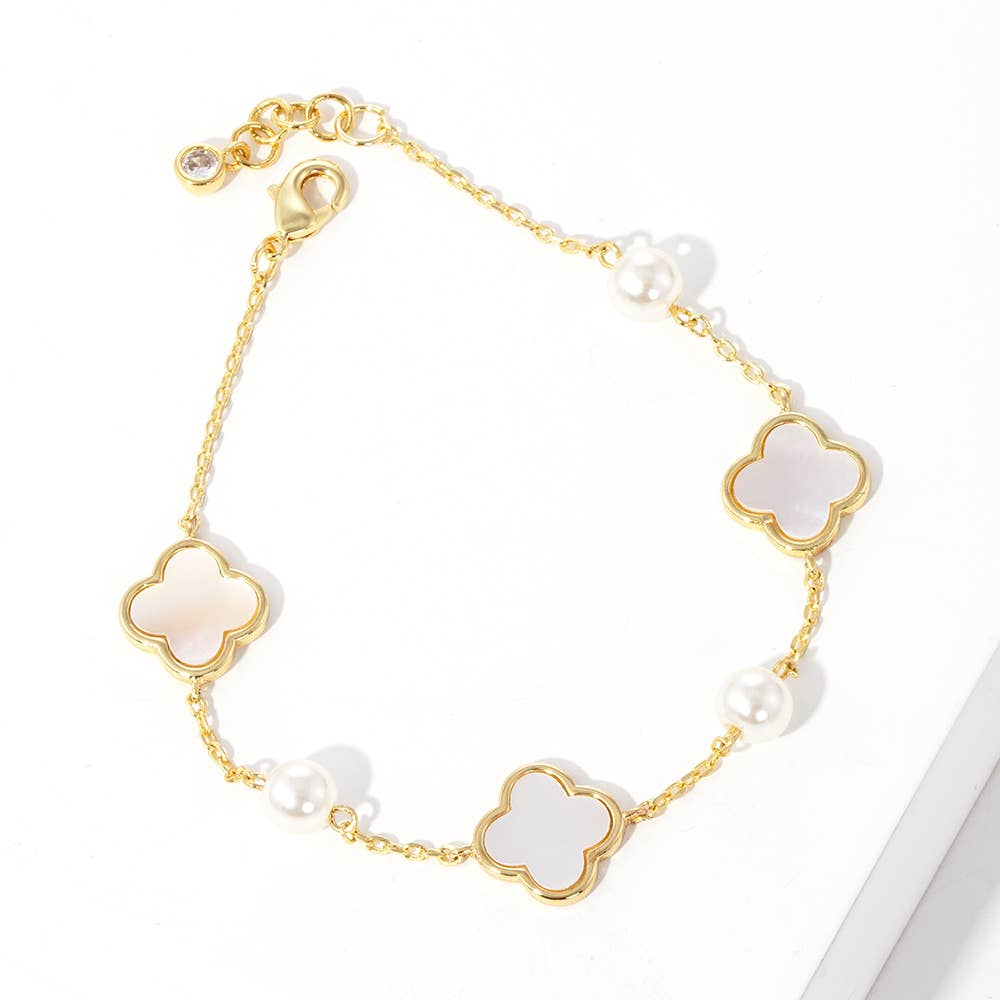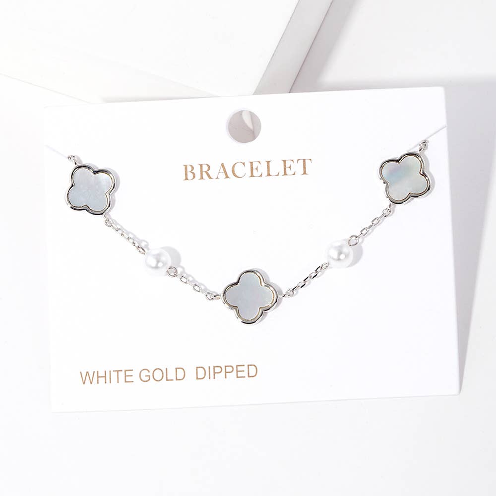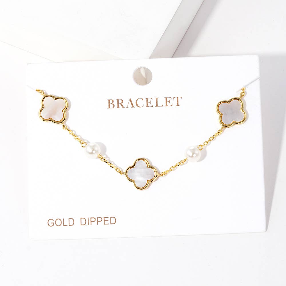 Gold Dipped Mother of Pearl Quatrefoil Station Bracelet