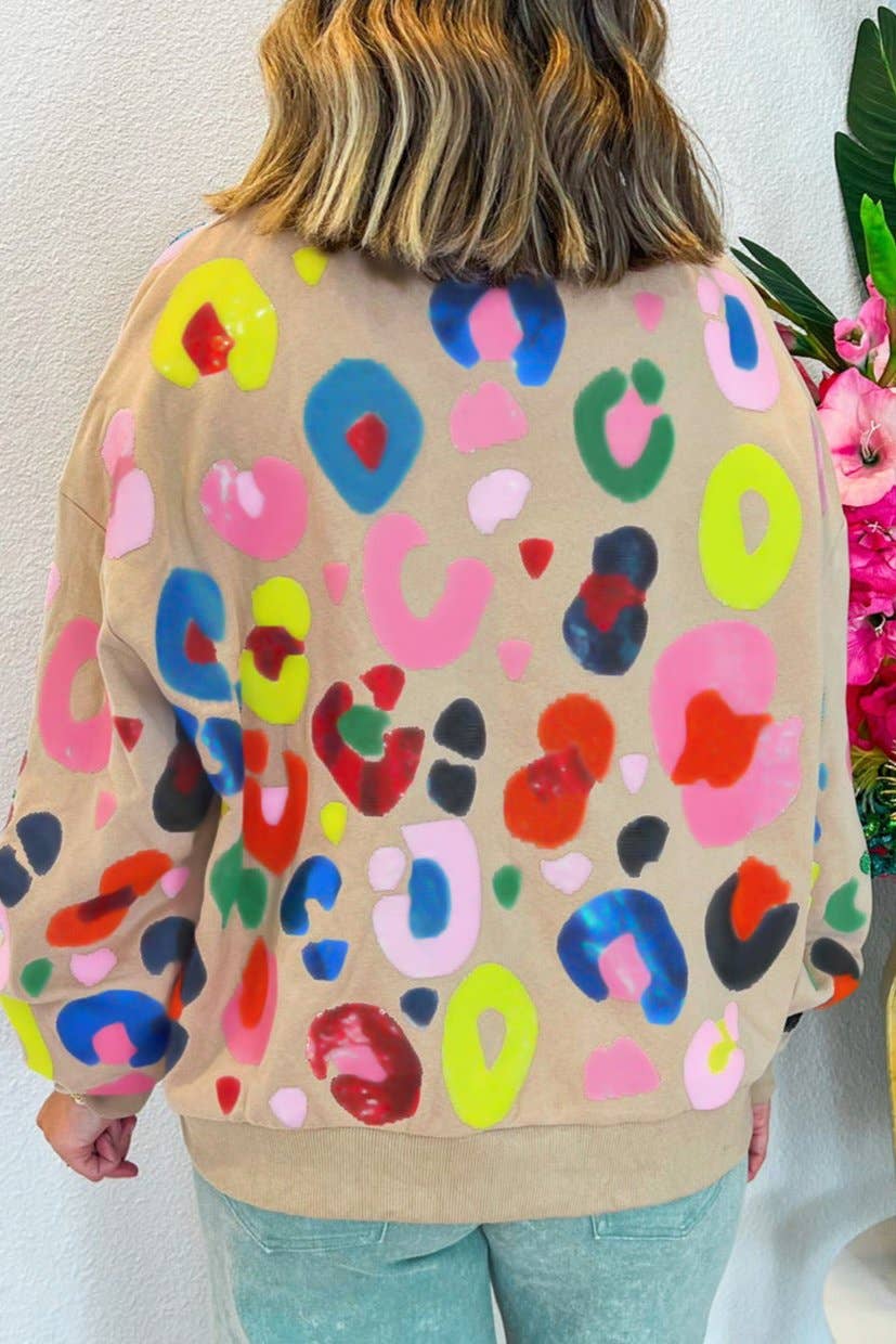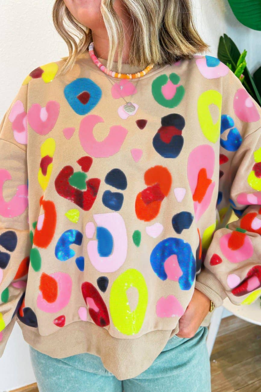 Stand out in style with our sweatshirt. With a vibrant and eye-catching multicolor leopard print, this sweatshirt is sure to elevate your casual look. The pullover style and drop shoulder design provide a cozy and relaxed fit for various body shapes. Perfect for a fashionable and comfortable outfit. 100% Polyester