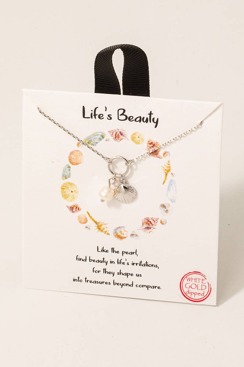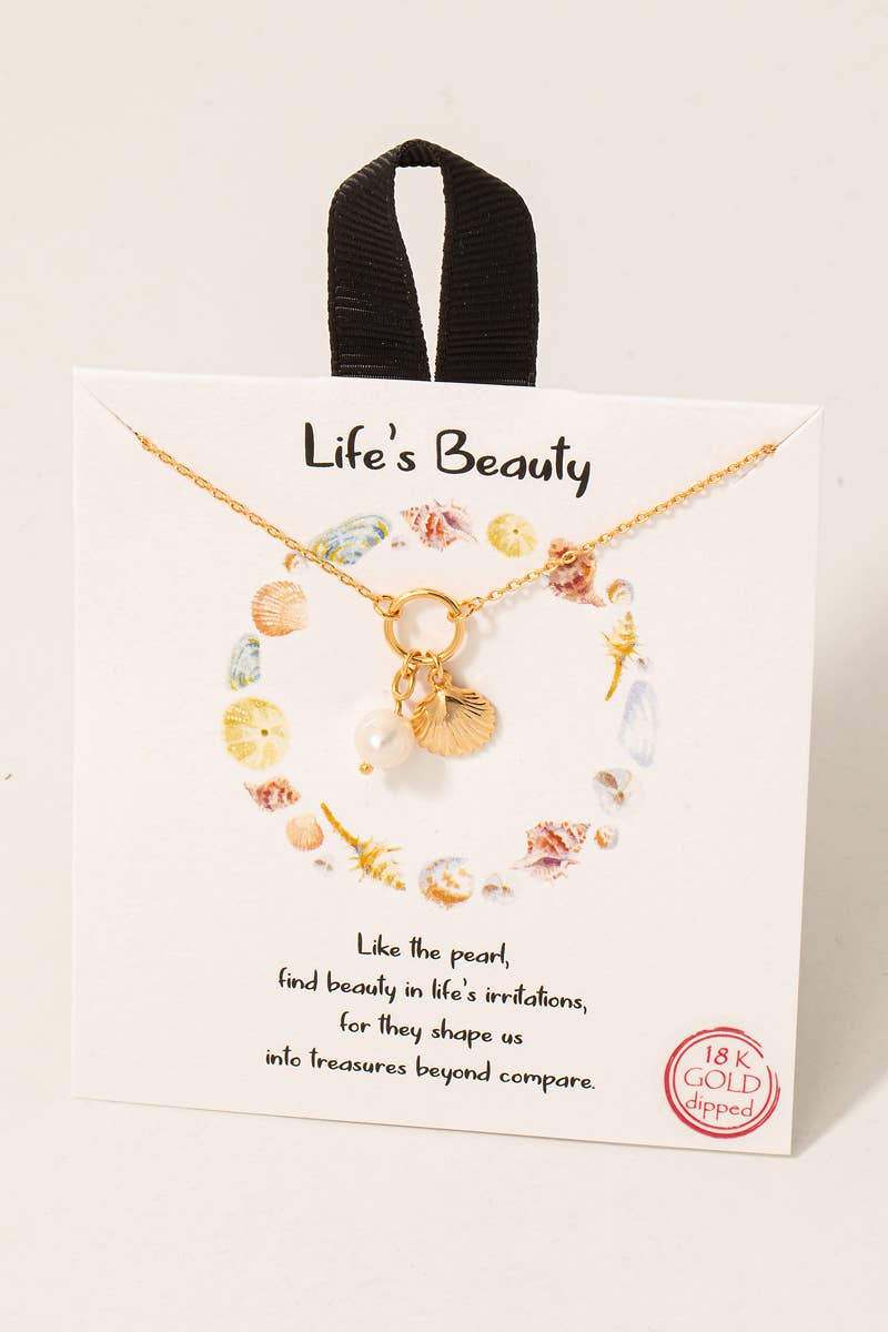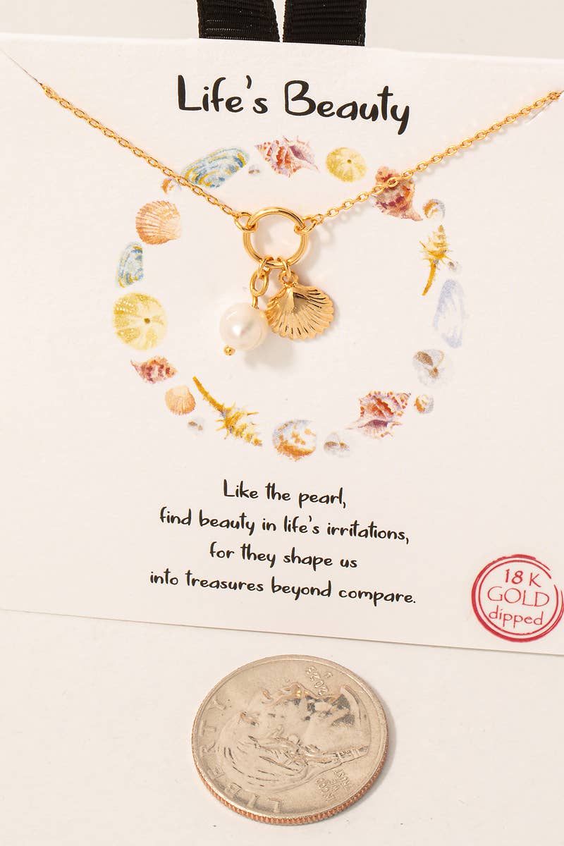 This gold dipped necklace introduces a unique pearl seashell charm necklace style.