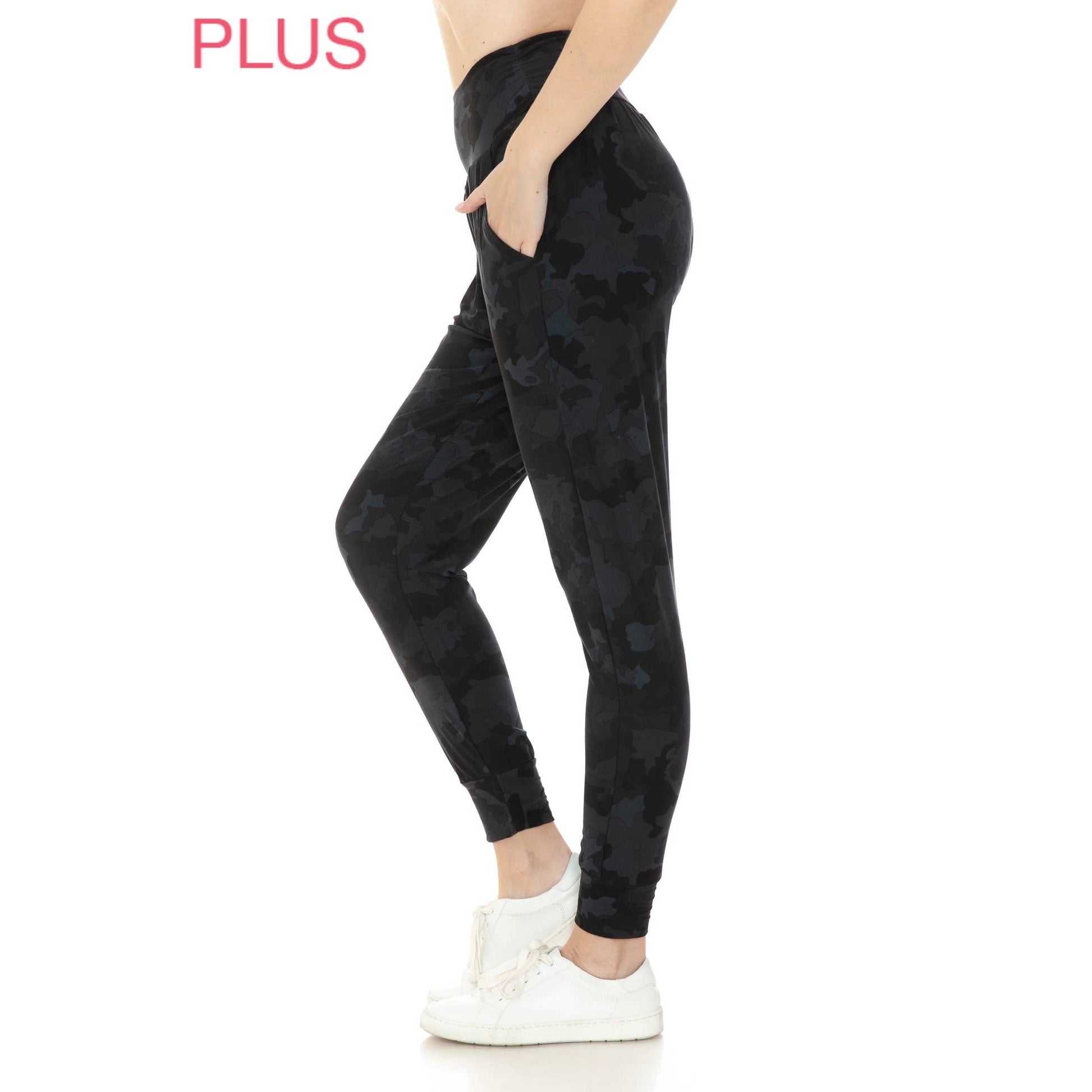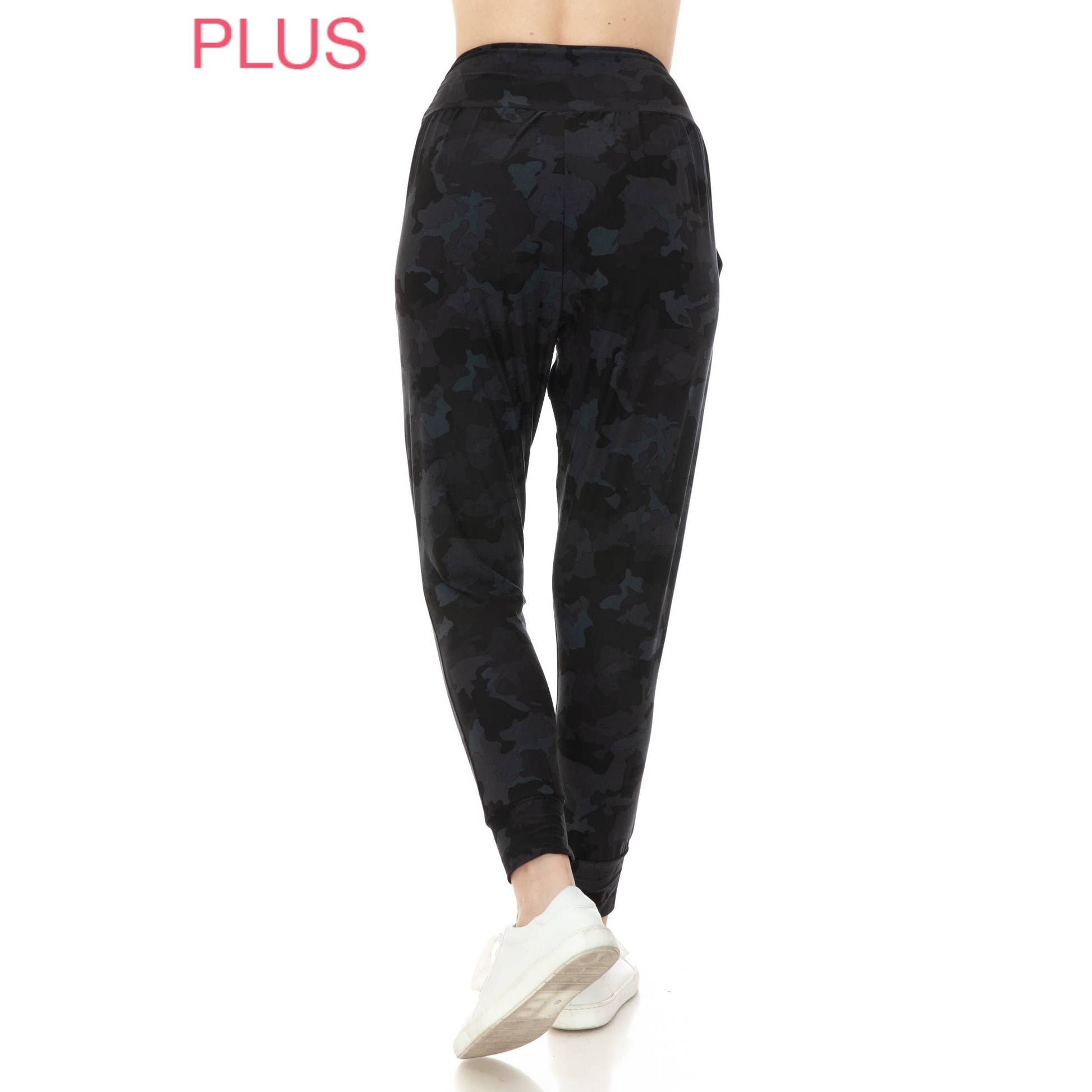 Plus Size Buttery Soft Print Relaxed Fit Joggers Comfortable Elastic Waistband Functional Pockets Fabric: 92% Polyester 8% Spandex