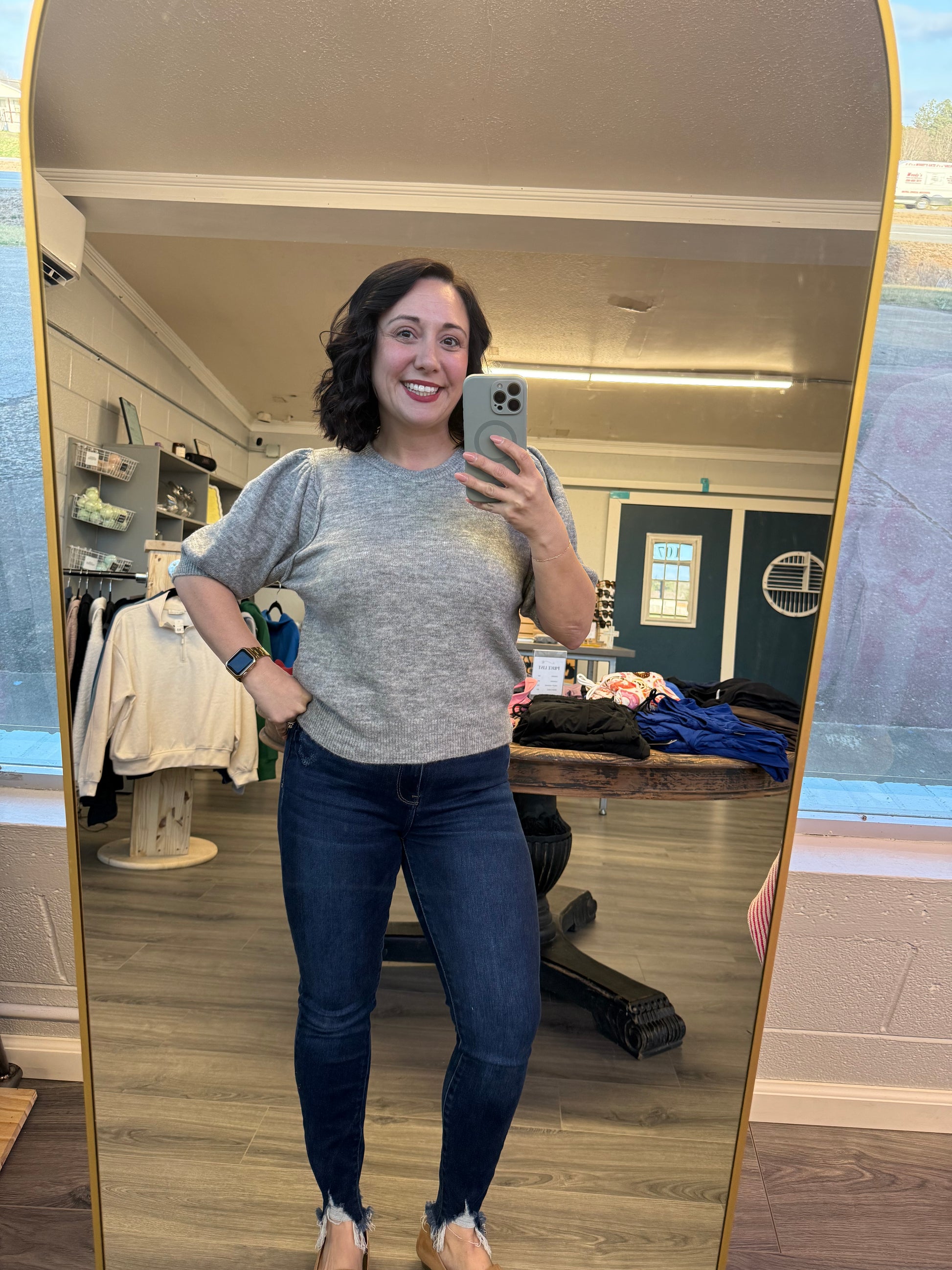 PUFF SHORT SLEEVE ROUND NECK SWEATER
