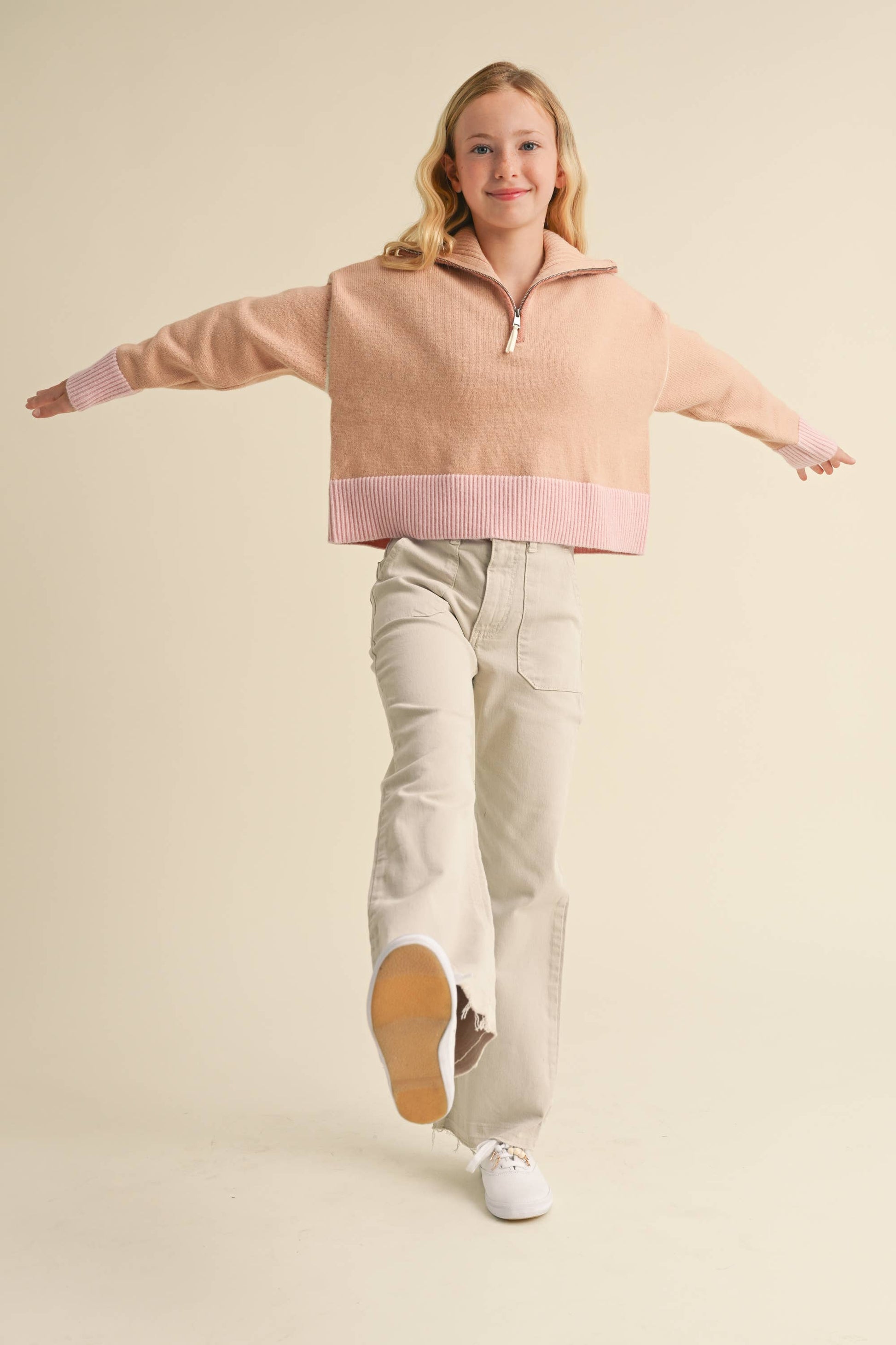 This half zip sailor collar pull over sweater is perfect wear with Jeans or skirts.