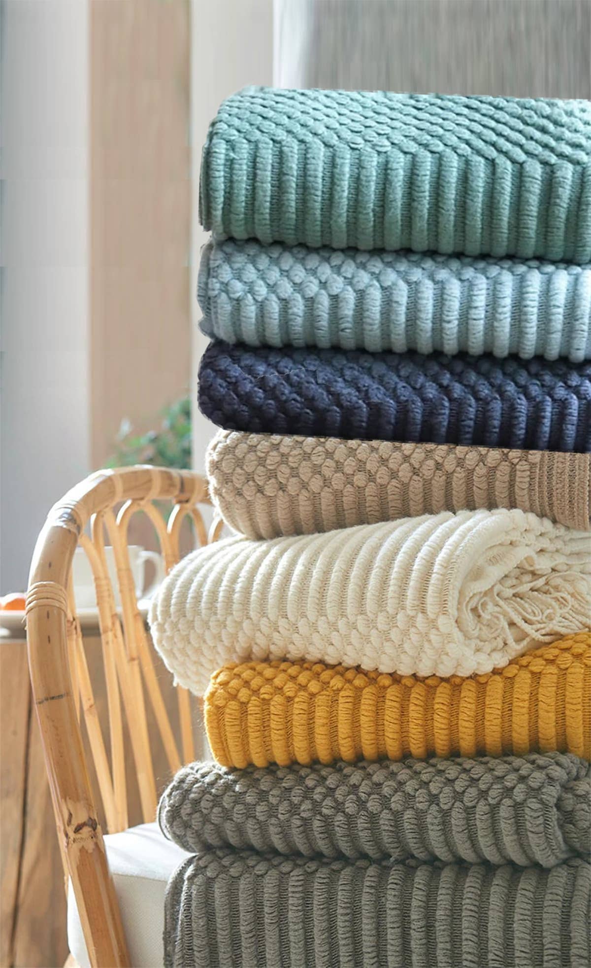 This Waffle Stripe Throw Blanket brings additional warmth and comfort into any room. Features a solid color with the beautifully textured, striped knit pattern that adds visual interest and provides extra warmth and comfort. The charming fringe accents add a touch of bohemian flair and a playful, decorative element to your home. Crafted with meticulous attention to detail, this cozy blanket combines style and warmth to elevate any space.
