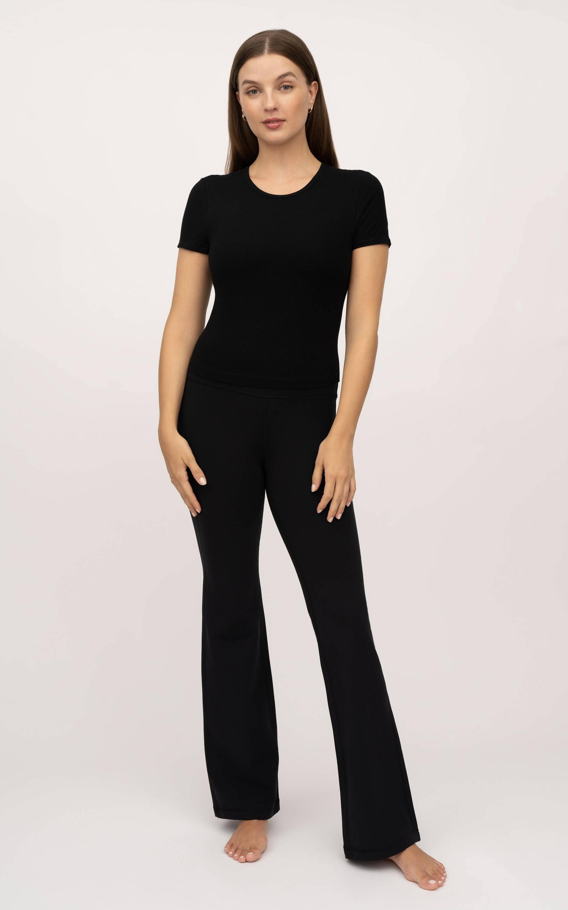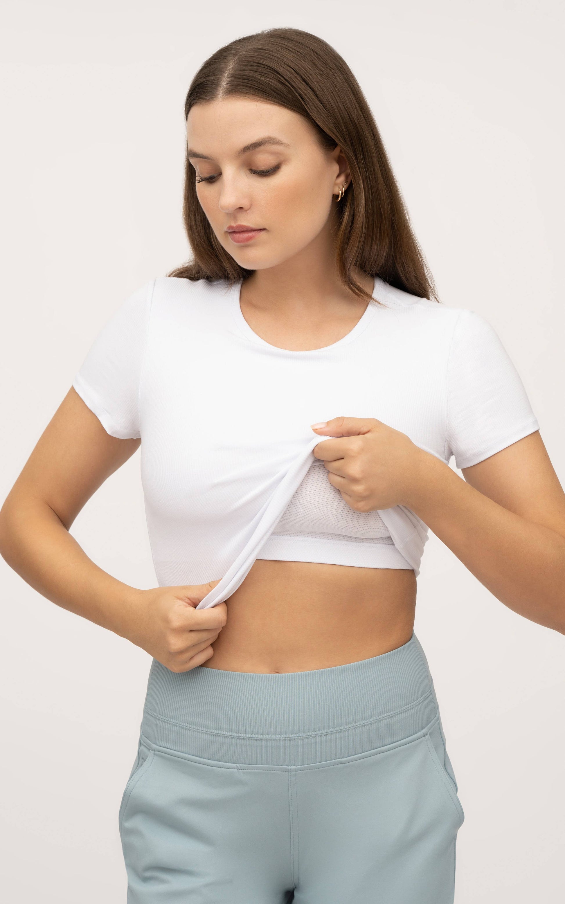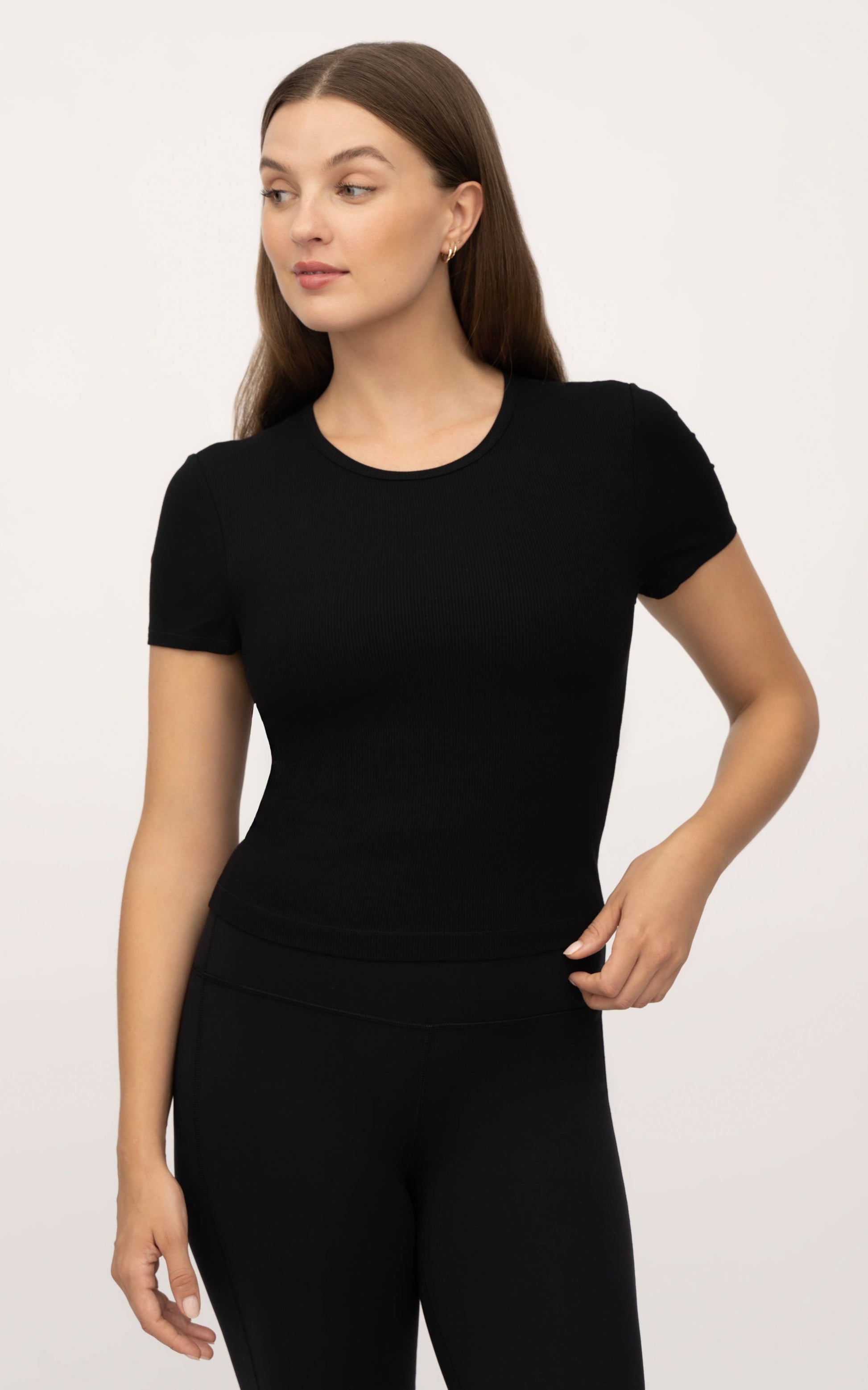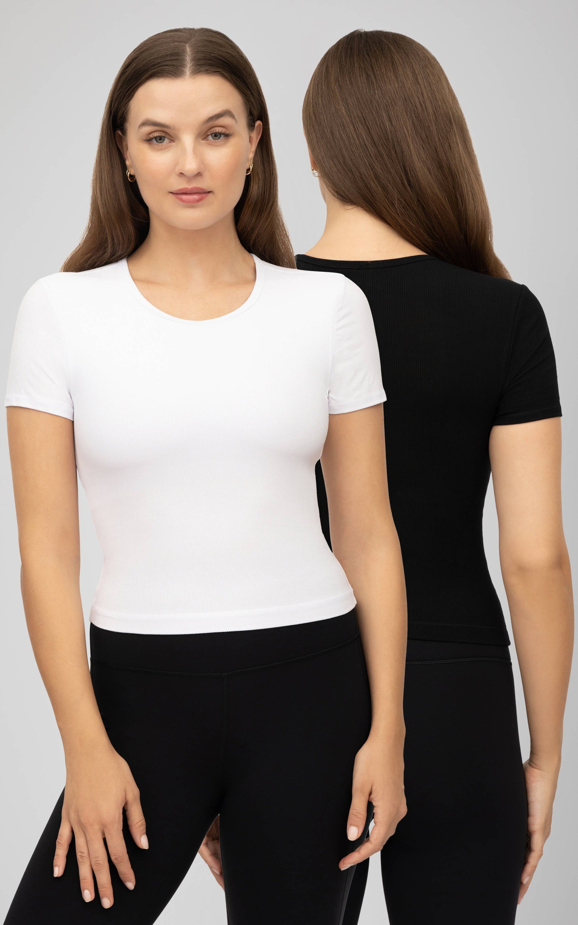 Women's Rib Short Sleeve Top with Inner Bra - 2 PC SET - Soft rib fabric - Women's basic essential - Inner bra attached