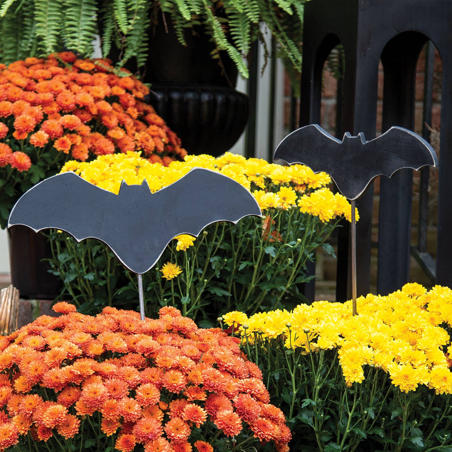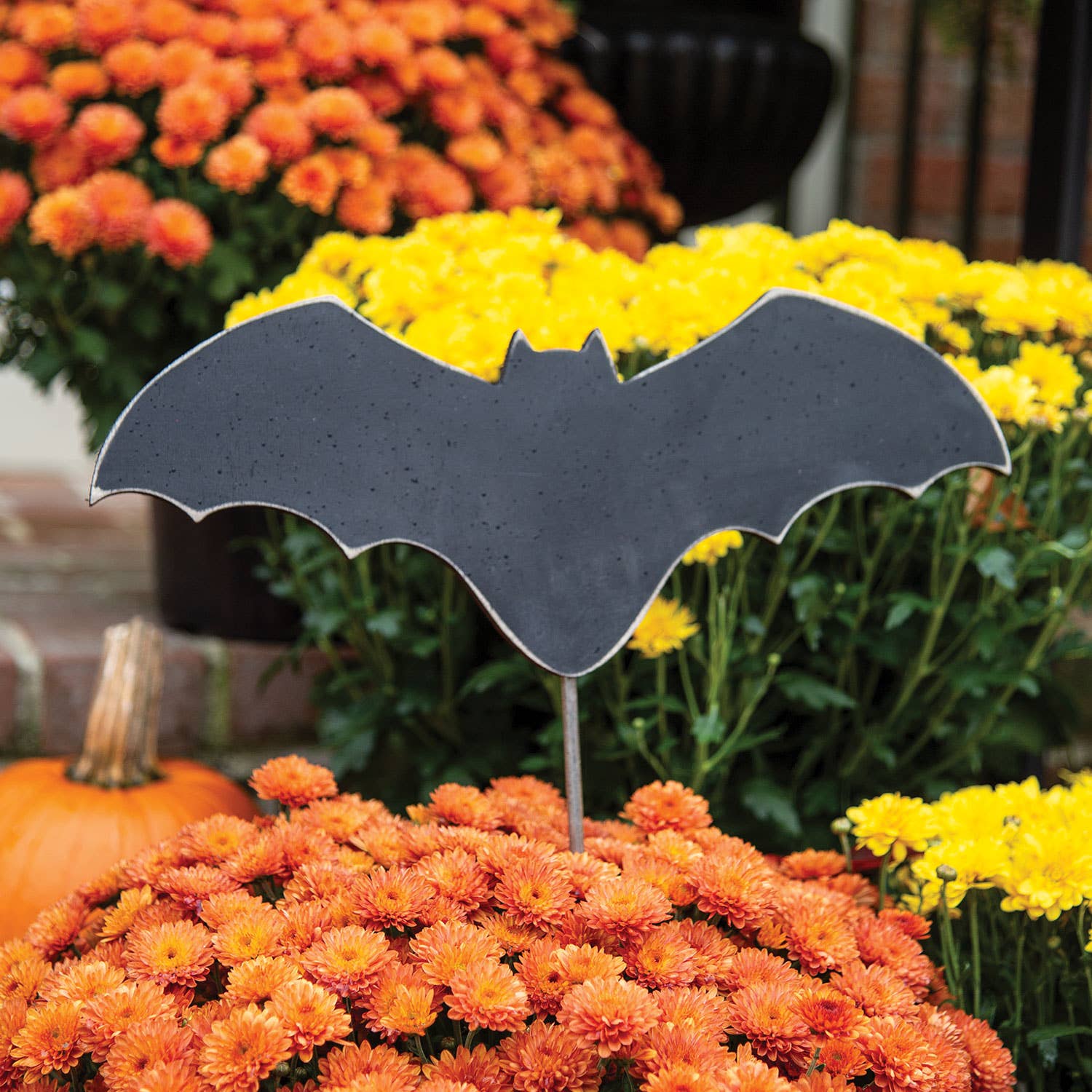 Display it alongside your favorite Halloween decor as a sitter or pair it with a metal dowel for display as a stake. This bat looks great paired with colorful fall florals or placed in metal containers or baskets for fun fall displays.