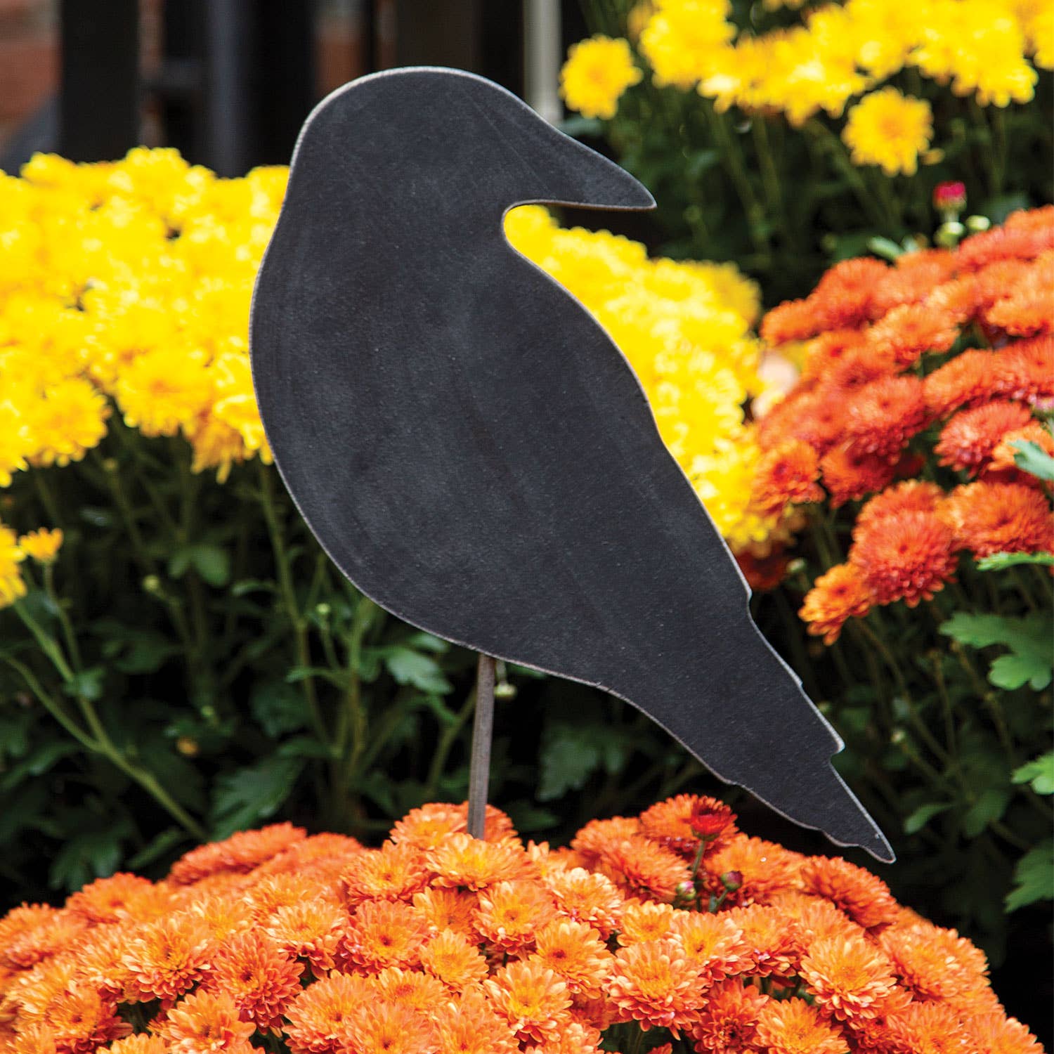 Display this item as a stake in a bouquet of Fall-time mums or place in a hay bale or through a real pumpkin to "perch" the crow on top. Alternatively, perch it alongside your favorite autumn decor as a sitter.