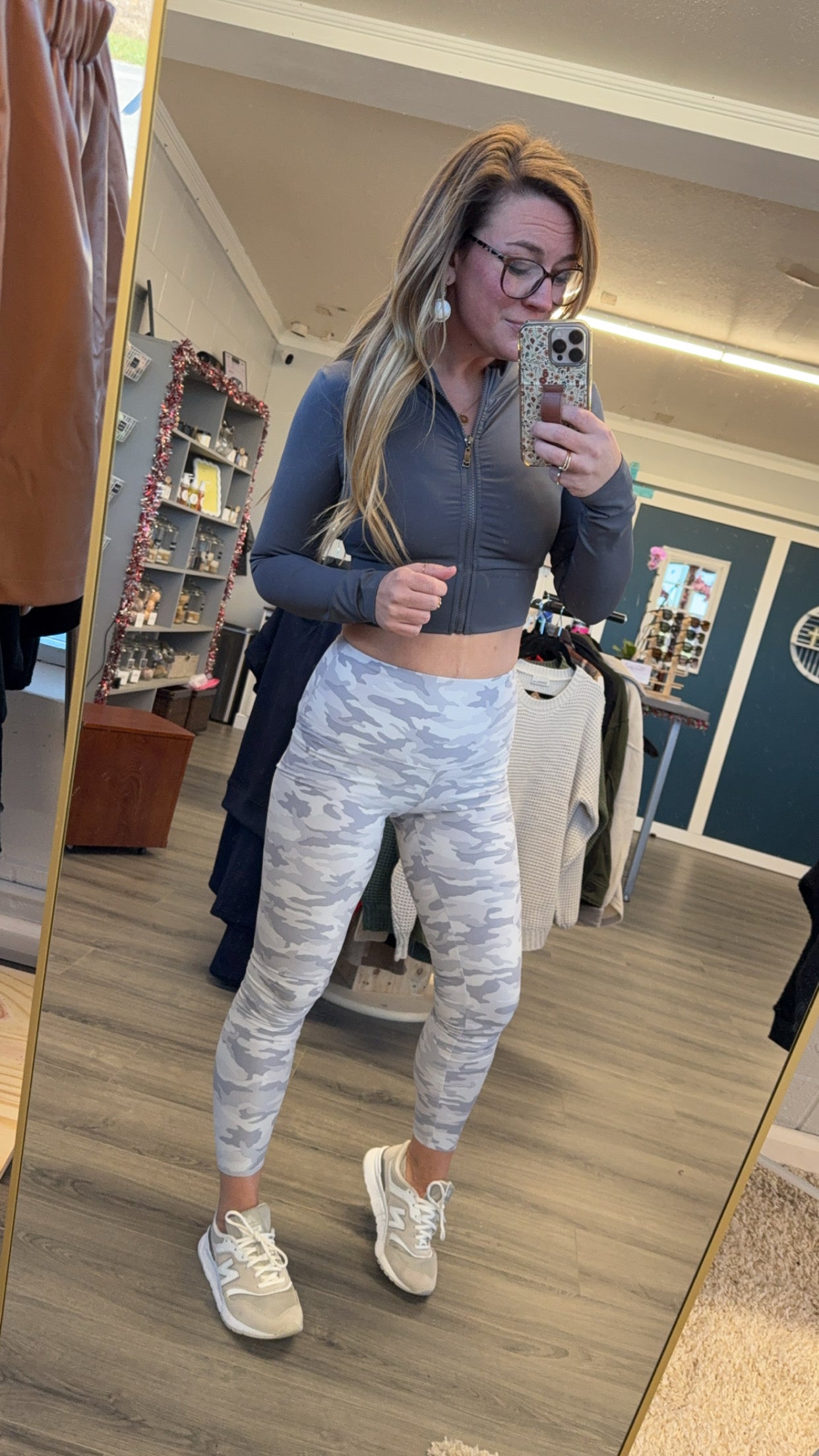 Cute zip up cropped jacket. Perfect to throw over your workout top and hit the gym or wear with athletic wear to get your errands done.